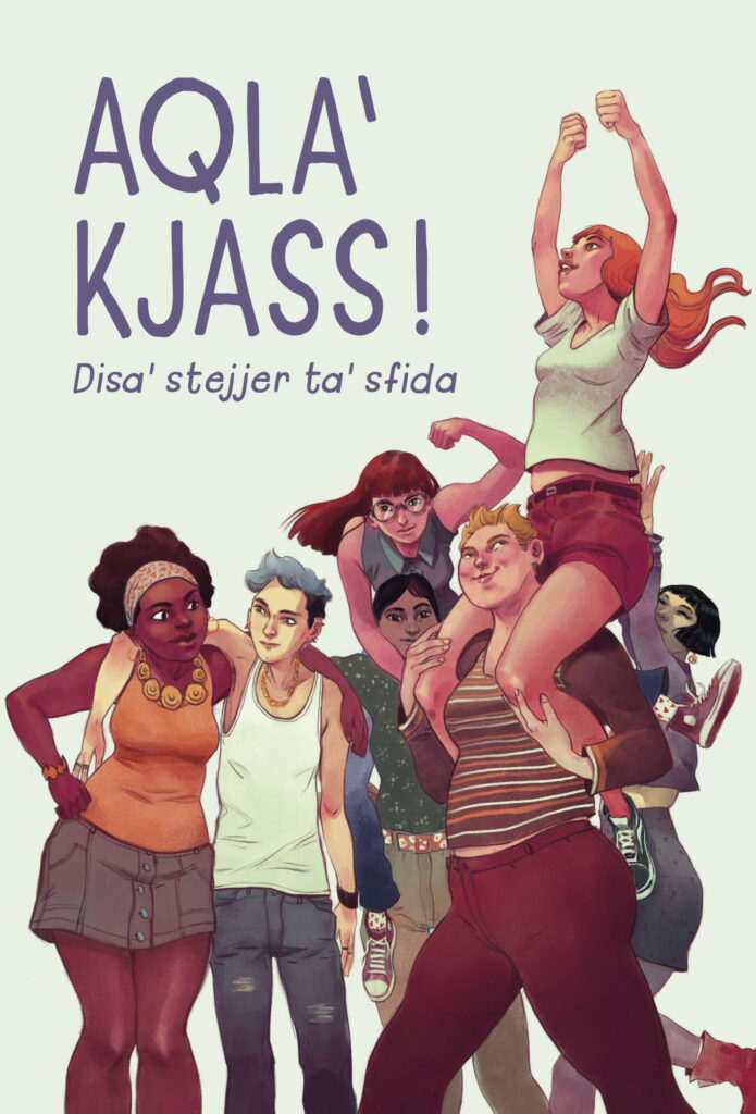 Originally published in Italy under the name Fai Rumore (Il Castoro publication), and now translated into Maltese by Clare Azzopardi and published by Merlin Publishers, Aqla’ Kjass! is a collection of 10 stories that highlight episodes of gaslighting, slut shaming, fatphobia, catcalling, date rape and other situations of gender-based violence.