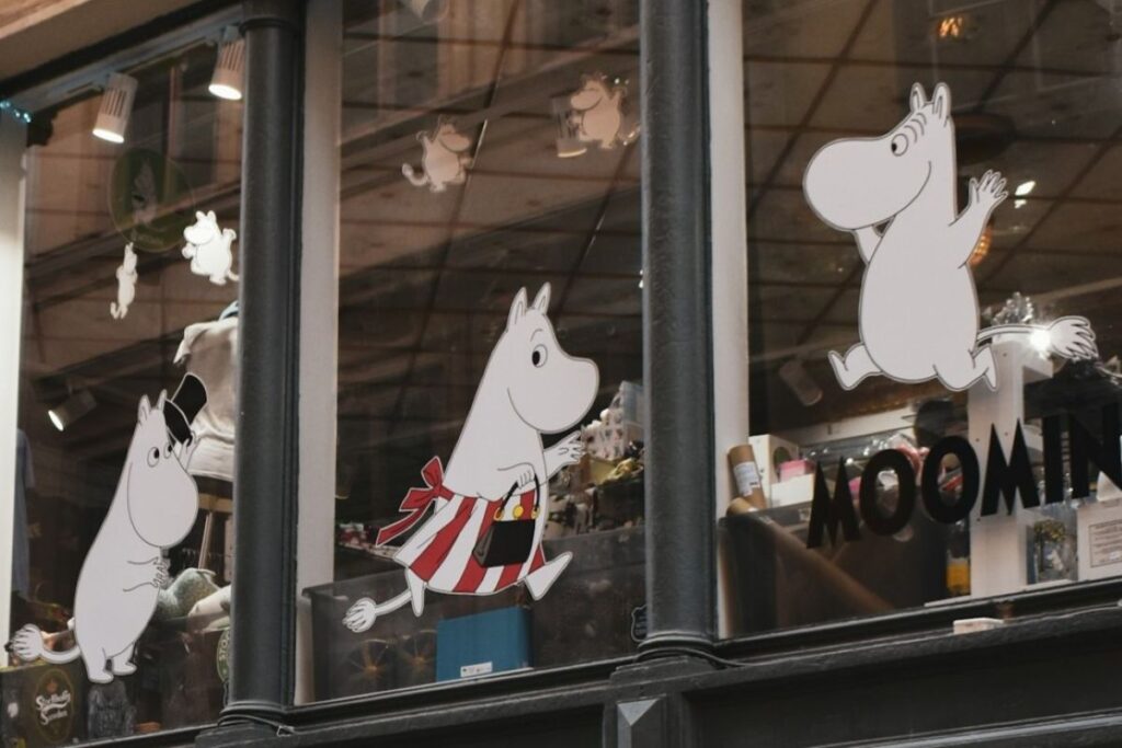 The handbag’s first value is carrying items Moominmamma or anybody else may need on their perilous travels. It is almost immediately put to use in The Great Flood, when Moomintroll falls in water and, once rescued, has wet feet. Moominmamma gives him a pair of dry socks that symbolise the comfort and reassurance Moomintroll needs (even though Moomins do not actually wear socks).