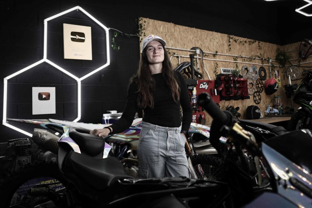 “I fell into stunts by watching videos,” she said. “No one in my family was in the motor sports world. My father only had an agricultural quad, not at all made for sports, but I started trying to do wheelies with it in a field.”