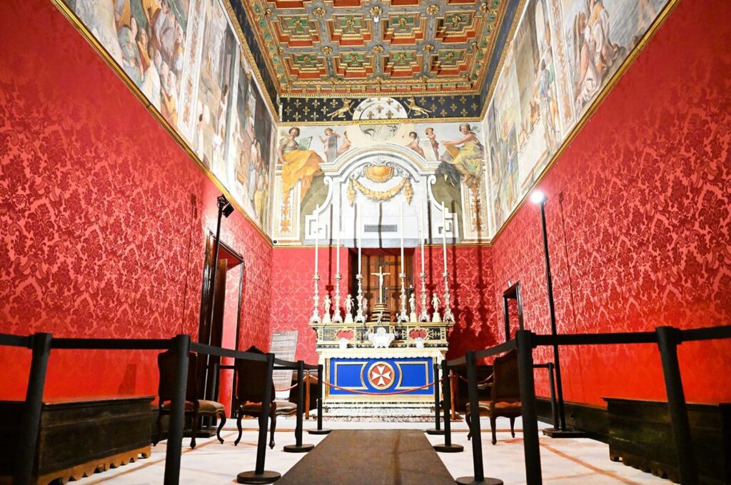 These rooms formed part of the Grand Master’s summer apartment, among them the drawing room and the study, the bedroom and the chapel. The cabinetto di curiosità (cabinet of curiosities), the conventual chaplain’s room and the treasury office were also opened, along with three other halls now hosting thematic exhibitions focusing on different chapters in the palace’s history: the French period, the Order of St Michael and St George, and the Maltese Parliament, which until a few years ago was convened in this very building.