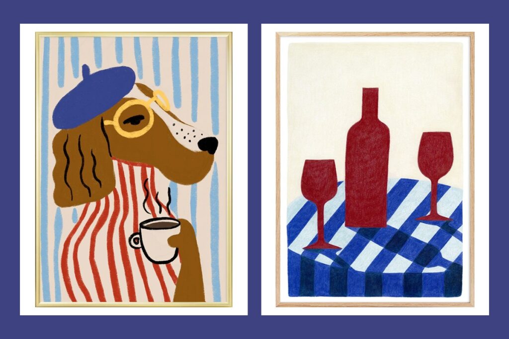 The prints at the top of this article Read Wine for Two and Sophisticated Dog are both available for €12.56 from Desenio.