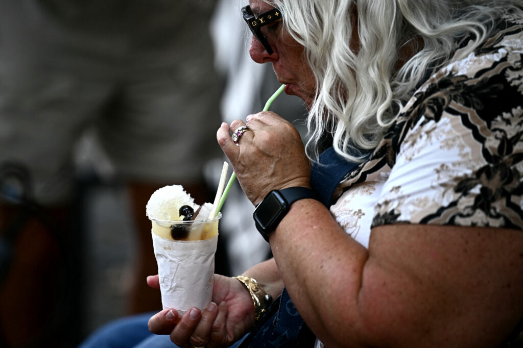 “It’s delicious! Especially on such a hot day, it’s very refreshing,” said Andrea Alvarado, a 55-year-old Californian, who opted for the exotically flavoured tamarind, mint and black cherry grattachecca on offer.
