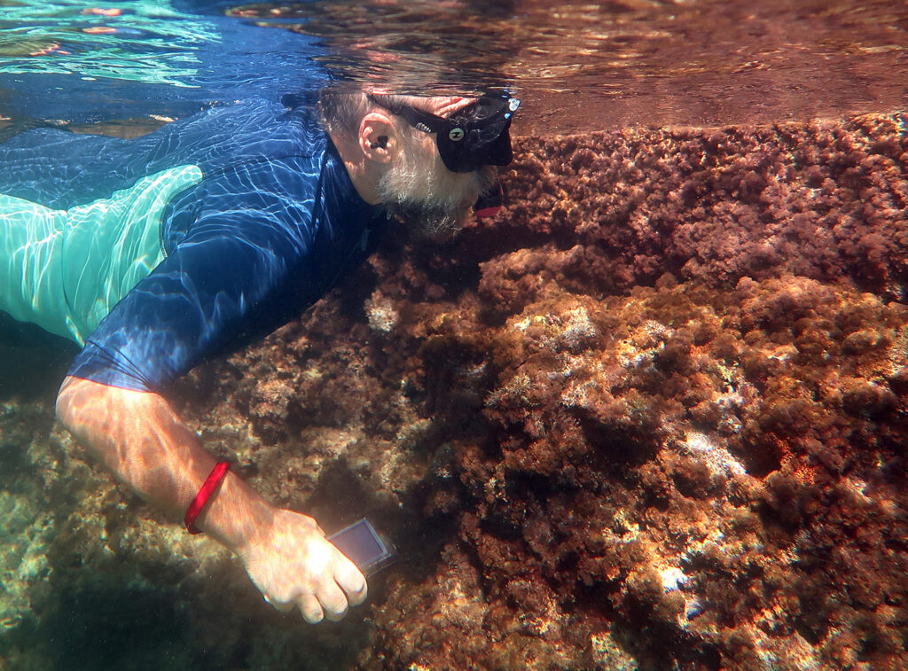 The respectful snorkeller will soon discover one of the most rewarding practices: gently rest a hand on a rock close to the surface or scratch that rock with your finger. Within seconds you may be regaled with two or three blennies coming over to investigate, curiously checking out what’s new on the menu, maybe nibbling your finger.