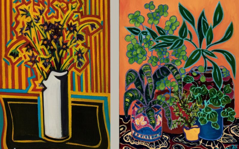 Still life is a traditional genre that remains charged with vitality and relevance today, just as it did for Preca in the twentieth century. The nature of still life, or natura morta, is inherently silent and contemplative, carrying a subdued gravitas. Preca’s heavy impasto and sombre tonal register contrast with my own visual language, which draws more from German Expressionism, pop sensibilities, and the mediated glow of the screen. Yet beneath the chromatic intensity and densely constructed compositions lies an undercurrent of melancholy. The recurring subject of domestic gardening operates as both metaphor and inquiry, an existential approach to life’s cycles, fragility, and persistence.