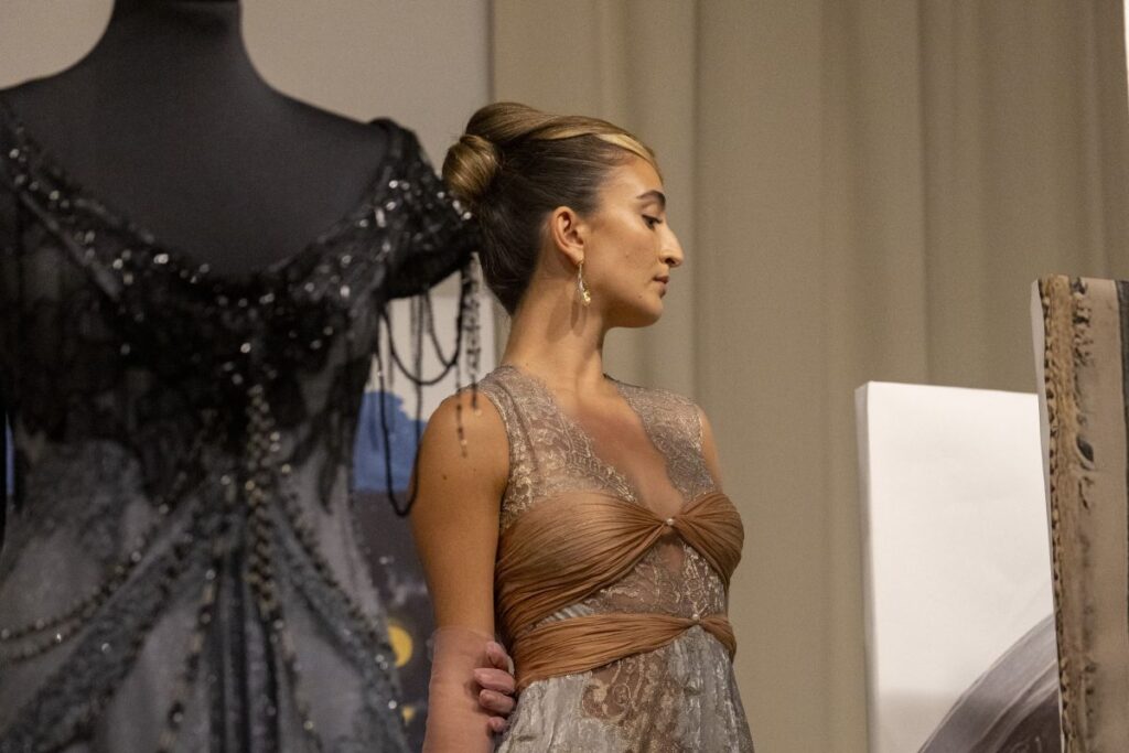 We hope visitors feel a sense of discovery, as though they have stepped into a moment suspended between eras. Beyond the immediate beauty of the gowns, the aim is to invite curiosity, contemplation, and a deeper engagement with the craftsmanship. There is also an element of intimacy: the idea that each viewer may find their own reflection or story within the work, allowing the exhibition to resonate on a personal as well as a collective level.