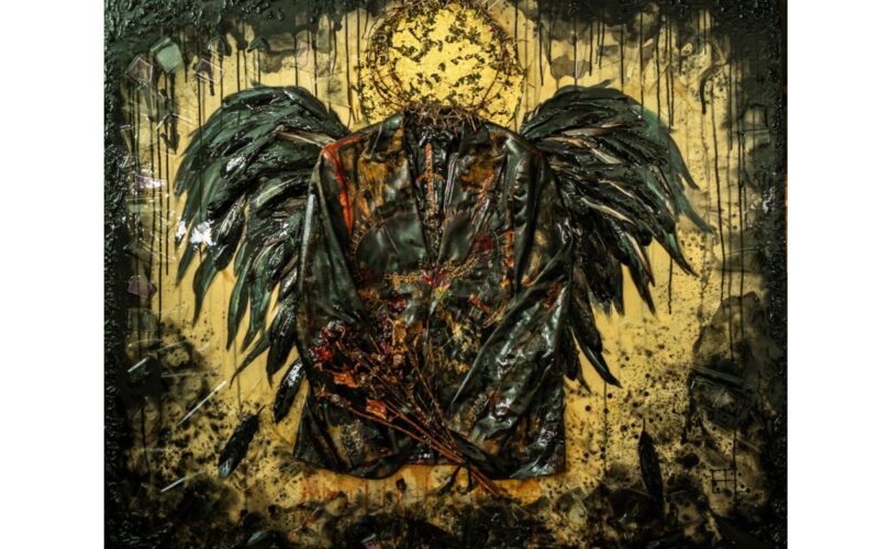 Fallen Angel II is the second in a trilogy. While there are painted elements, the piece is primarily a mixed-media work on wood (140cm x 120cm). It was auctioned at the SiGMA Euro-Med Charity Auction, an event that forms part of the SiGMA Euro-Med Awards and supports the foundation’s charitable missions.