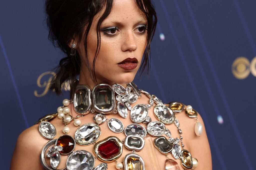 Jenna Ortega, the star of Netflix’s Addams family revamp Wednesday, turned heads in her striking Givenchy black skirt − and only chunky jewels draped over her torso.