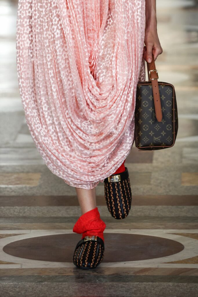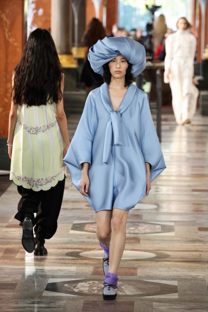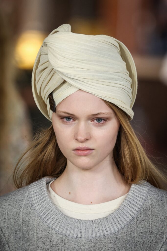 Among label classics like ‘Speedy’ bags and colourful ‘pochettes’, some models wore turban-like headpieces paired with free-flowing tunic-inspired garments.