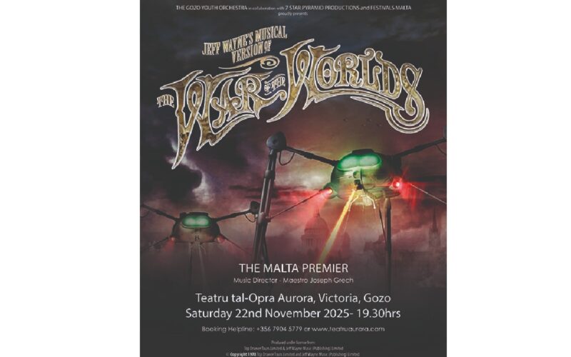 The Gozo Youth Orchestra, in collaboration with 7 Star Pyramid Productions and Festivals Malta, is presenting the Malta premiere of Jeff Wayne’s musical version of The War of the Worlds – The New Generation at the Aurora Opera House in Victoria on November 22 at 7.30pm.