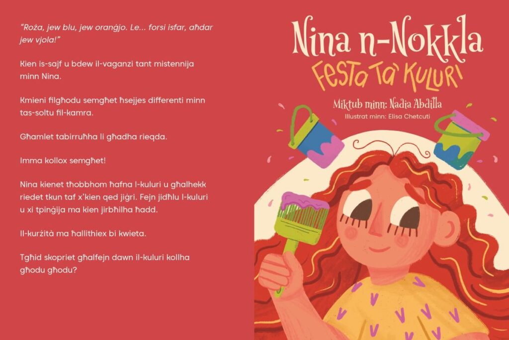 Published by Klabb Kotba Maltin, Abdilla has a series of children’s books featuring Nina n-Nokkla. Her books engage curiosity by subtly inviting children to think critically about everyday experiences with some adventurous twists, of course.