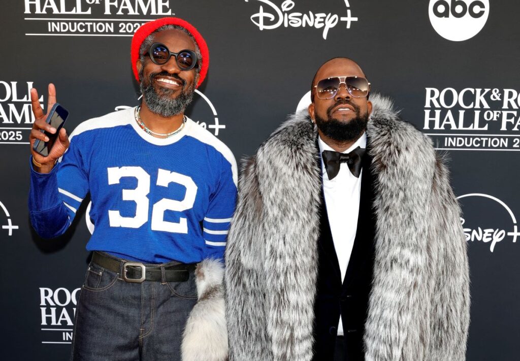 André 3000 (left) and Big Boi of Outkast at the 2025 Rock & Roll Hall of Fame Induction Ceremony at Peacock Theatre in Los Angeles, California. Photo: Frazer Harrison/Getty Images for RRHOF/AFP