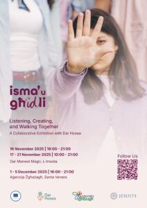 Isma’ u Għ(id)li, a collaborative exhibition with Dar Hosea, a centre that provides a safe and supportive environment for those experiencing vulnerability, violence and sexual exploitation, is currently open at Dar Manwel Magri, Msida.
