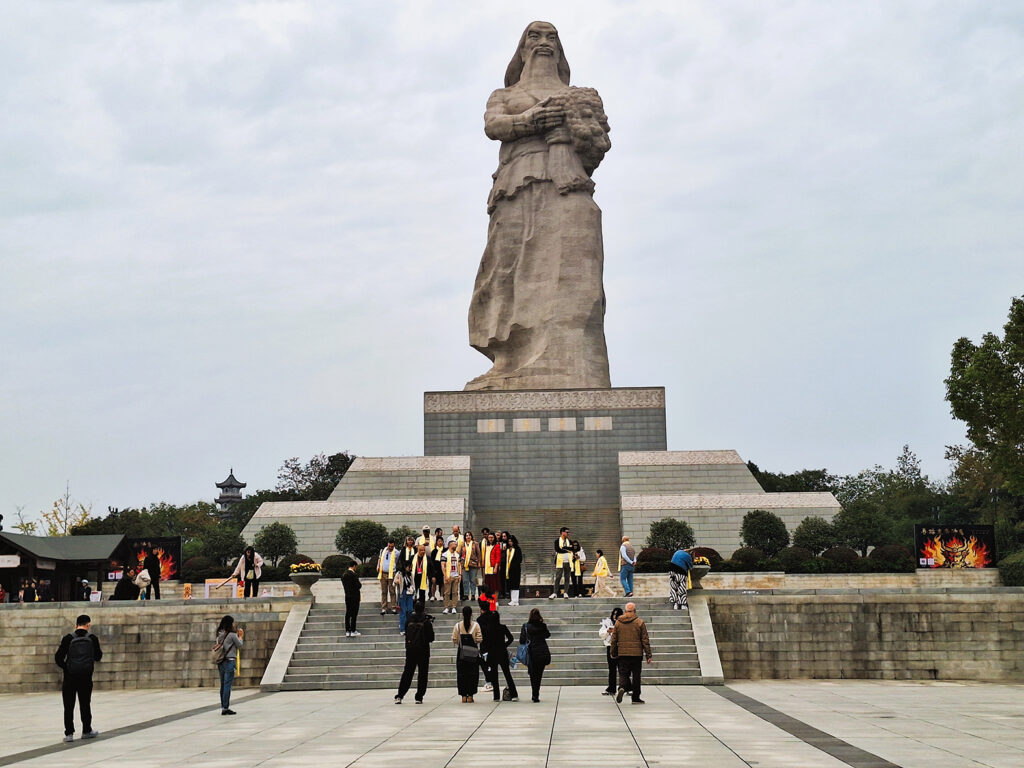 From the museum, we travelled to the Yan Emperor’s Hometown Scenic Area in Suixian County. The sheer size of the site is immediately apparent and visitors are transported between its main sections by small shuttle vehicles. At the ceremonial heart of the complex stands a monumental statue of Yan Emperor Shennong, whose scale and placement underscore his symbolic importance as a foundational figure in Chinese civilisation, closely linked to agriculture and herbal medicine.