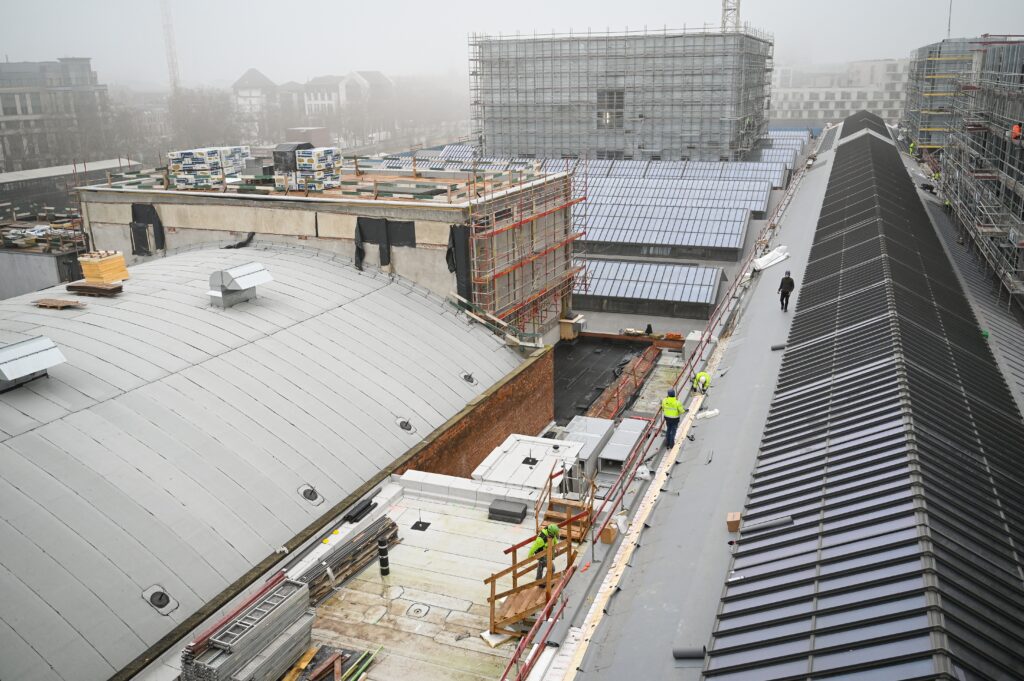 The construction site during a tour and press conference to present the opening programme for the future KANAL-Centre Pompidou modern and contemporary art museum in Brussels, on Wednesday. Photo: Elias Rom/AFP