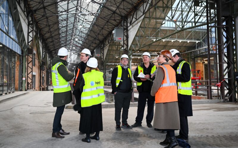 The construction site during a tour and press conference to present the opening programme for the future KANAL-Centre Pompidou modern and contemporary art museum in Brussels, on Wednesday. Photo: Elias Rom/AFP