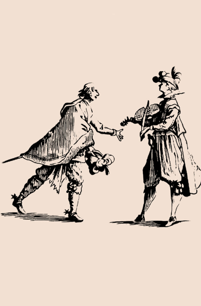 After Jacques Callot, One, an engraving from I Balli di Sfessania, found at the study at Palazzo Falson Historic House Museum.