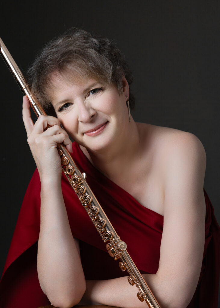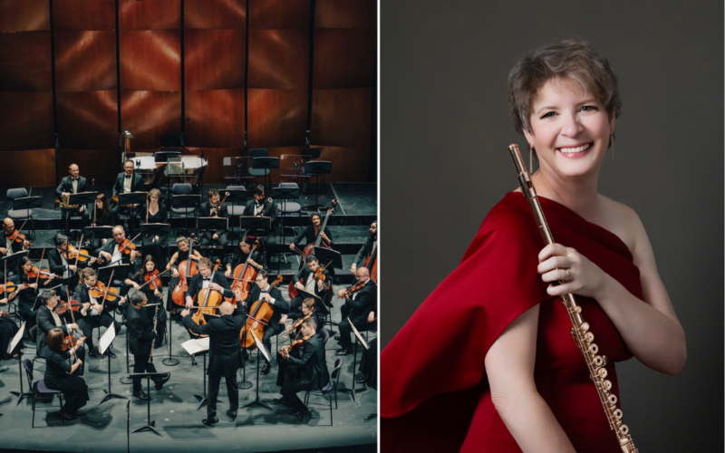 CAPTION 1 (main image): MPO principal flautist Rebecca Hall. Photo: MPO/Facebook (left)/Amanda Hsu (right)
