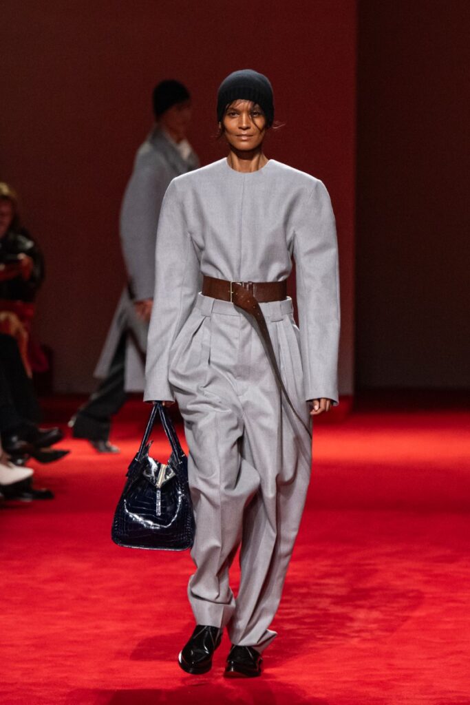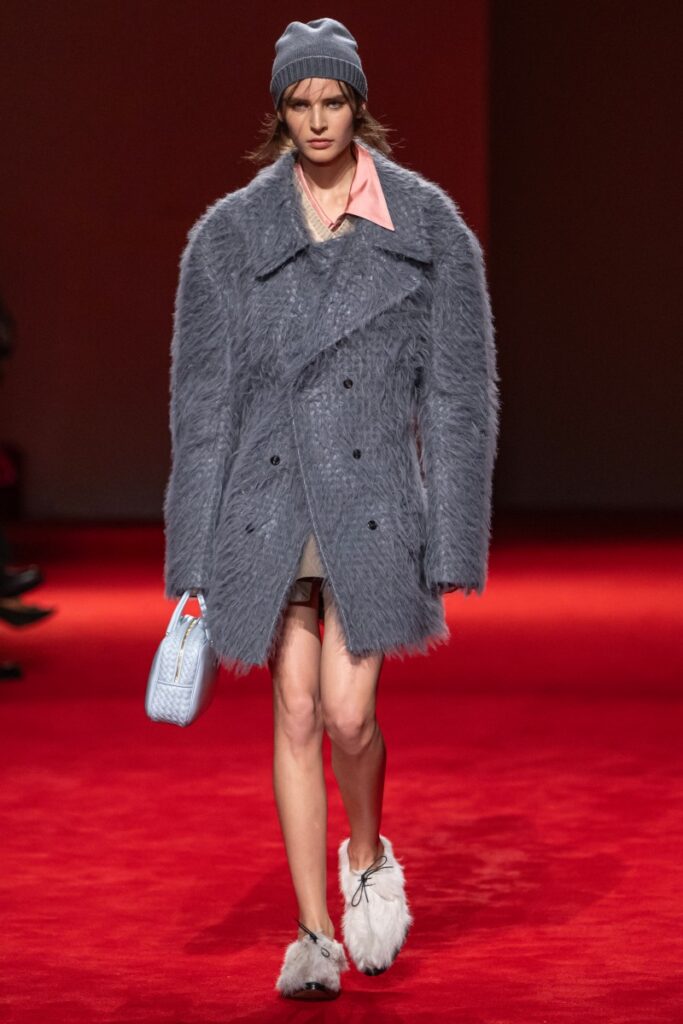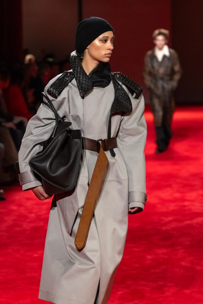 Trotter told journalists after her show that the Fall/Winter collection for the brand known for its “intreccio” technique of woven leather was inspired by “what Milanese style meant to me and Bottega Veneta from my viewpoint”.