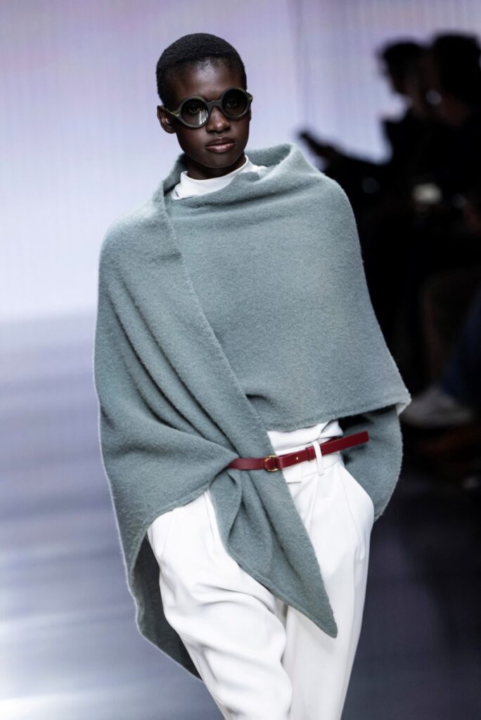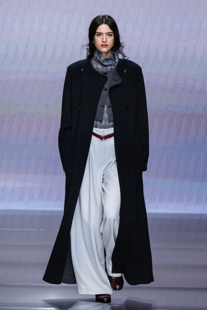 After the showmanship at Bottega Veneta, a change of mood pervaded the air at Giorgio Armani, where women’s creative director Silvana Armani − niece of founder Giorgio who died last year − presented a subtle, atmospheric pret-a-porter collection in tones of grey.