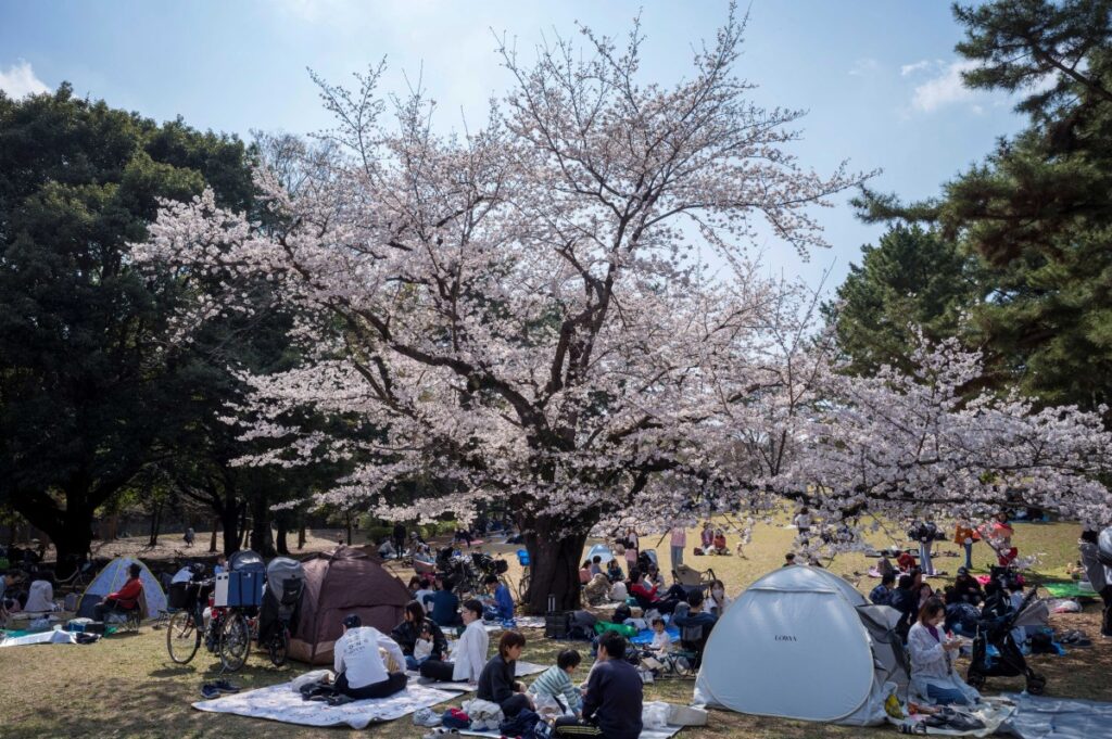 Across the nation families and friends rolled out blankets and tarpaulins at parks, temples and even cemeteries over the weekend to eat and drink under cherry trees for traditional “hanami” or flower viewing gatherings.
