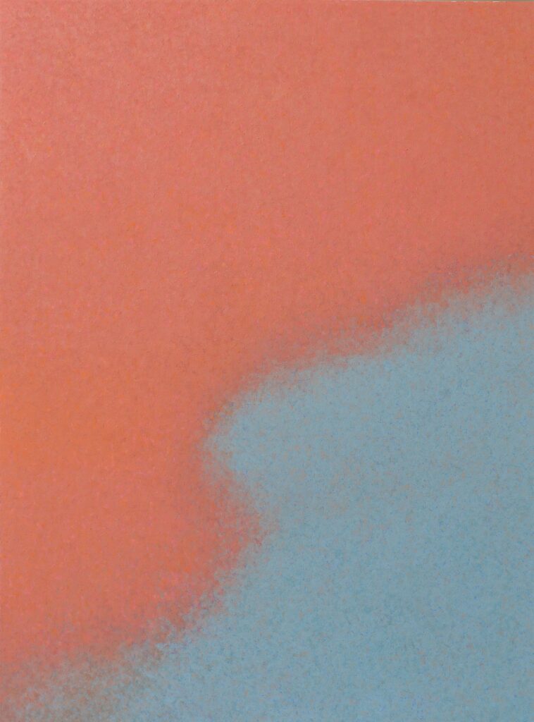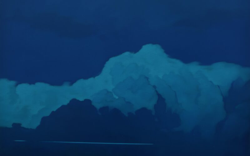 Severino, by contrast, constructs paintings entirely through light and colour. His works suggest rather than describe landscape, evoking Mediterranean horizons, dawn light and atmospheric transitions through subtle tonal gradations.