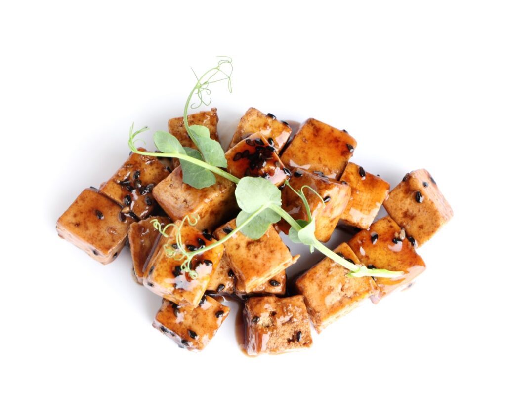 In comparison, firm tofu has the highest protein density per gram among all types of tofu. The proteins found in tofu are not only the building blocks for muscles but also help prevent sugar spikes caused by simple carbohydrates, such as rice. This is particularly interesting for anyone trying to manage their weight, struggling with PCOS, insulin resistance or acne. The fats and proteins in tofu will “clothe the carbohydrate”, preventing a rapid surge of glucose into the bloodstream.