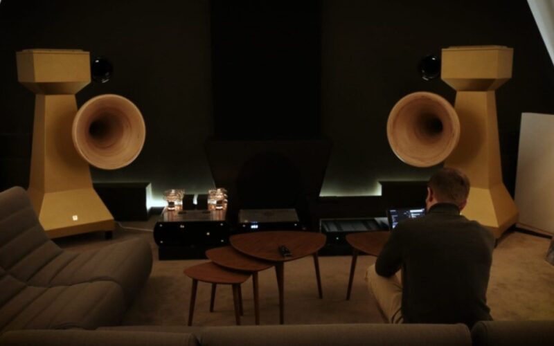 Listener’s underground, soundproofed audio room has a system worth around €200,000 at catalogue prices, with sculptural speakers from niche Greek manufacturer Tune Audio, says co-founder Jerome Thomas.