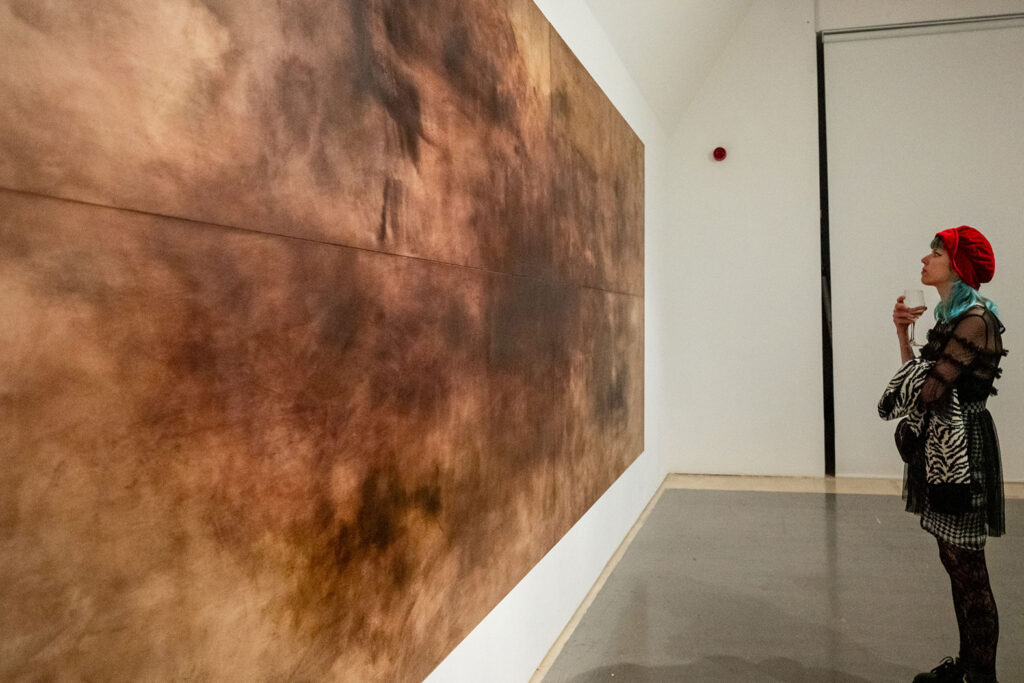 Alongside, Yanyun Chen presents a series of 12 welded stainless steel and gold leaf works, We Do Not Scar Within Set Boundaries, reminding us that understanding often emerges from uncertainty rather than precision. Critiquing notions of perfection, social and hierarchical expectations, her grid etchings comprise lined and dotted grids, as used in schools for graph plotting and writing practice, overlaid with unruly, aggressive scars.