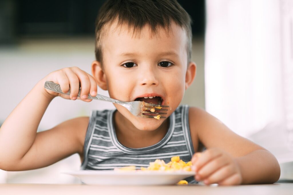 Although it can be difficult, try to trust that your child will eat as much or as little as they need. Children can mostly self-regulate to meet their bodies’ needs. So teaching your child to listen to their body’s physical cues – such as hunger and fullness – can help them build a positive relationship with food.