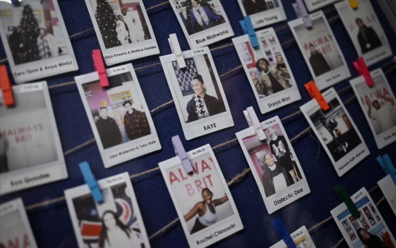 Polaroid photographs of returning students, including British singer Raye, are pictured at The BRIT School in Croydon, south London. Photos: Justin Tallis/AFP