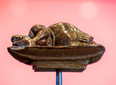 ‘The Idiom’, by Slovak artist Matej Kren, is a cylindrical tower of 8,000 books